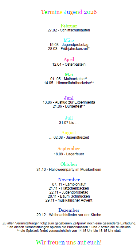 Veranstaltungen der Jugend 2025